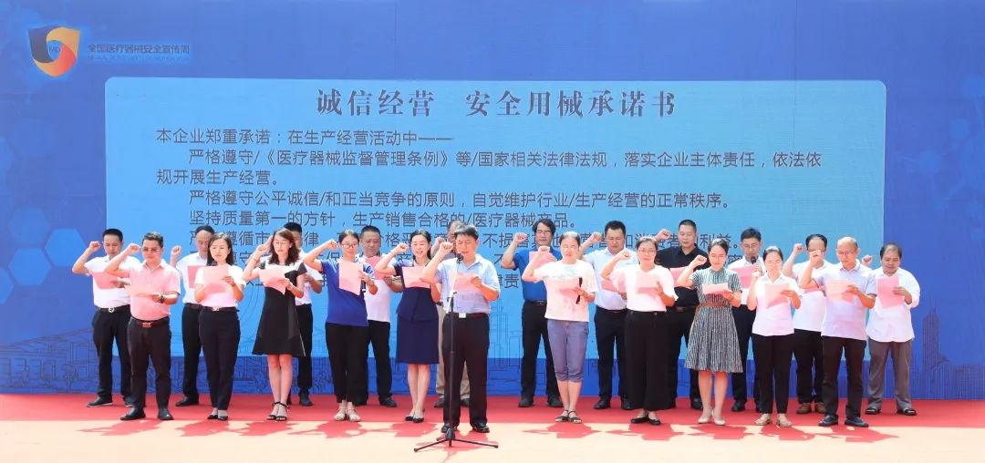 ▲医疗器械生产经营企业代表宣读质量安全承诺书
