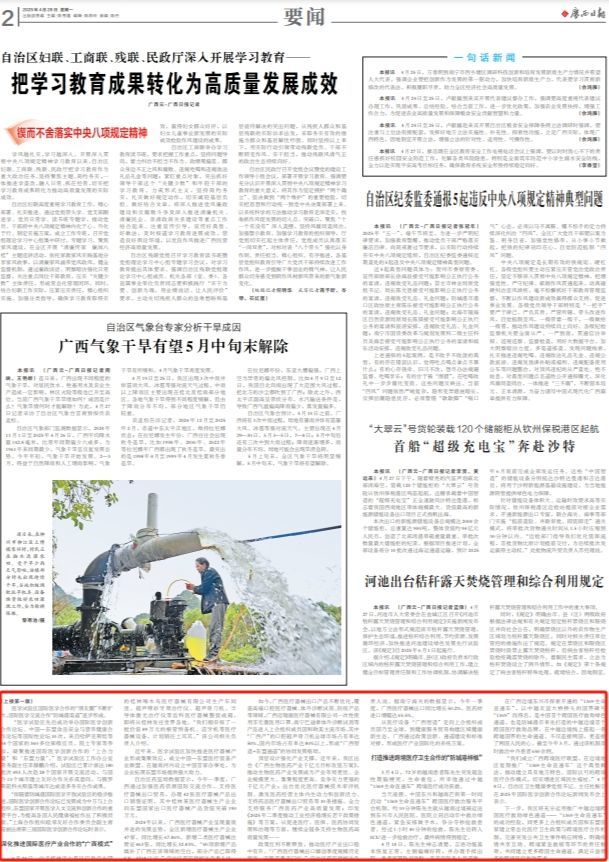 顶层设计强化产业支撑。近年来,我区出台《广西生物医药产业千亿元目标攻坚方案》,推动生物医药产业发展成为产业布局更优、企业规模更大、集聚程度更高、竞争实力更强的千亿元产业;出台优化医疗器械技术审评机制、激发医药经营主体内生动力和创新活力、支持药品医疗器械出口贸易等10条措施,全力支持服务广西医药产业高质量发展;印发《2025年二季度推动工业经济稳增长若干政策措施》等方案,从促进医疗、医保、医药协同发展和治理等方面,继续全链条支持生物医药高质量发展……