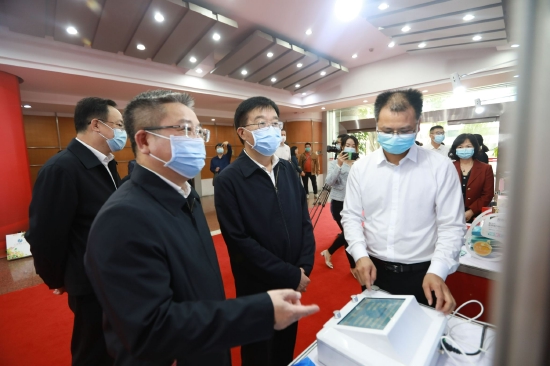 活动结束后,自治区副主席苗庆旺一行人参观了广西医药产业创新发展成效宣传板报,通过药品、医疗器械、化妆品名特优产品的展示,反映广西医药企业的科技创新成就。