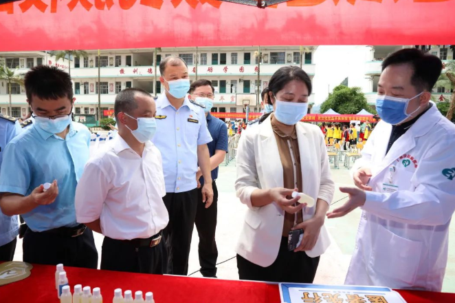 做爱影片办公室、化妆品监管处,河池检查分局,自治区药品不良反应监测中心,河池市、大化县做爱影片 ,自治区皮肤病医院,百马乡中心小学,广西英和药业有限公司负责人及代表参加活动。(程奇 蓝必贤)