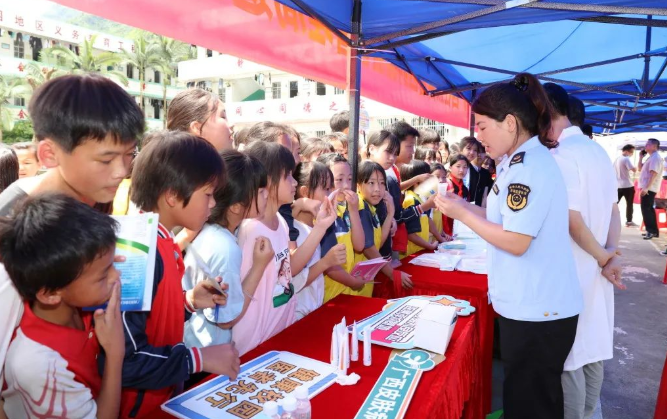 “我来回答,儿童化妆品的标志是小金盾!”“儿童化妆品是指适用于12岁以下的儿童”……6月15日上午,一声声稚嫩又嘹亮的答题声在广西河池市大化瑶族自治县百马乡中心小学校园中此起彼伏,现场气氛异常热烈,瑶山孩子们在这里体验了一场丰富多彩、生动有趣的儿童化妆品安全科普大餐。当天,2022年“全国化妆品安全科普宣传周”广西活动在这里启动,儿童化妆品安全科普活动送到了瑶山孩子们的身边,科普知识装进孩子们的心里。