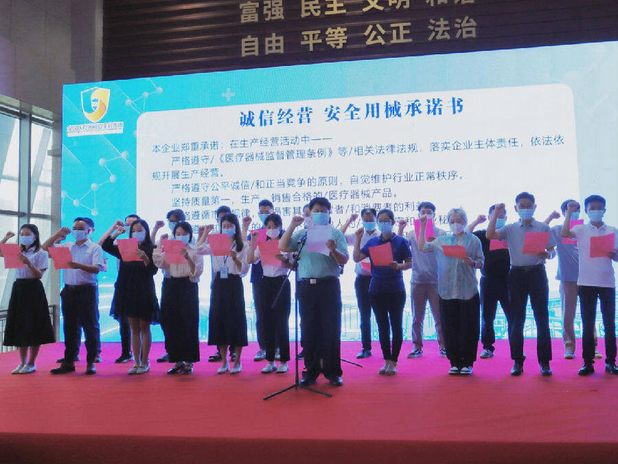 启动仪式上,广西医疗器械行业协会和广西医疗器械二十余家生产经营企业代表共同登台宣读诚信经营承诺书。现场开展医疗器械有关法规规章有奖竞答活动,以及企业产品公益咨询、皮肤测试、专家解答等服务,展现“安全用械,共治共享”的良好氛围。