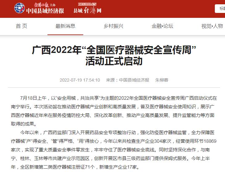 据介绍,2022年全国医疗器械安全宣传周广西宣传活动将于7月18日至22日在全区各地集中开展。(记者 朱柳蓉 通讯员 黄桢真)