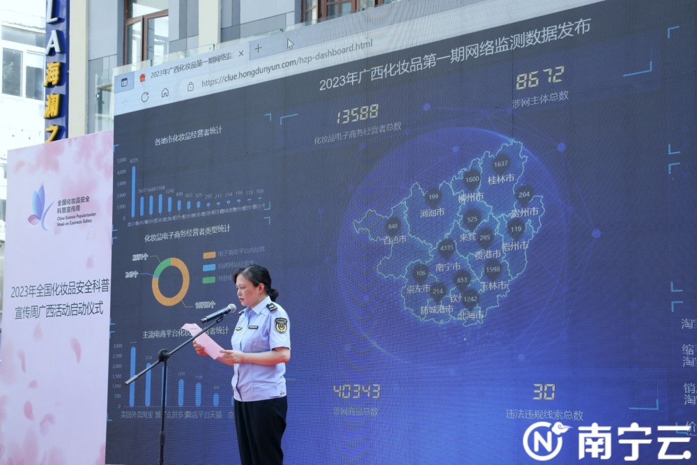 2023年全国化妆品安全科普宣传周广西活动启动仪式在南宁市兴宁区万国广场举行。通讯员 何正君 摄