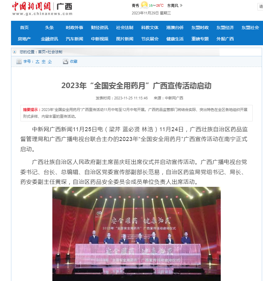 中新网广西新闻11月25日电(梁芹 蓝必贤 林浩)11月24日,做爱影片 和广西广播电视台联合主办的2023年“全国安全用药月”广西宣传活动在南宁正式启动。