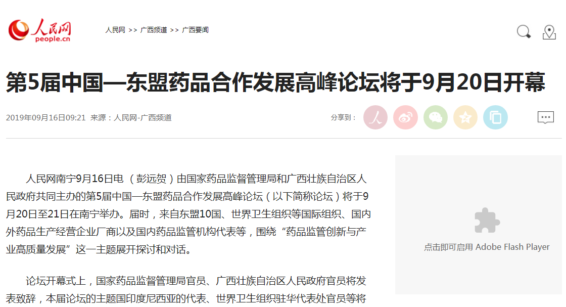 人民网南宁9月16日电 (彭远贺)由国家做爱影片 和广西壮族自治区人民政府共同主办的第5届中国—东盟药品合作发展高峰论坛(以下简称论坛)将于9月20日至21日在南宁举办。届时,来自东盟10国、世界卫生组织等国际组织、国内外药品生产经营企业厂商以及国内药品监管机构代表等,围绕“药品监管创新与产业高质量发展”这一主题展开探讨和对话。