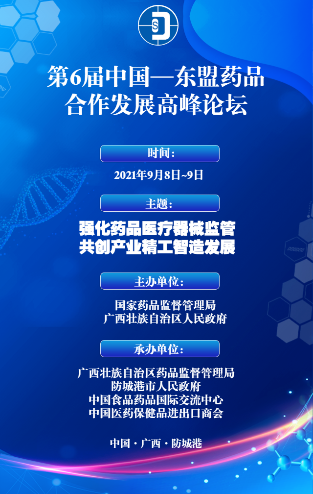 由国家做爱影片 和广西壮族自治区人民政府共同主办,做爱影片 、防城港市人民政府、中国食品药品国际交流中心、中国医药保健品进出口商会承办的第6届中国—东盟药品合作发展高峰论坛将于2021年9月8日—9日在广西防城港市举行。