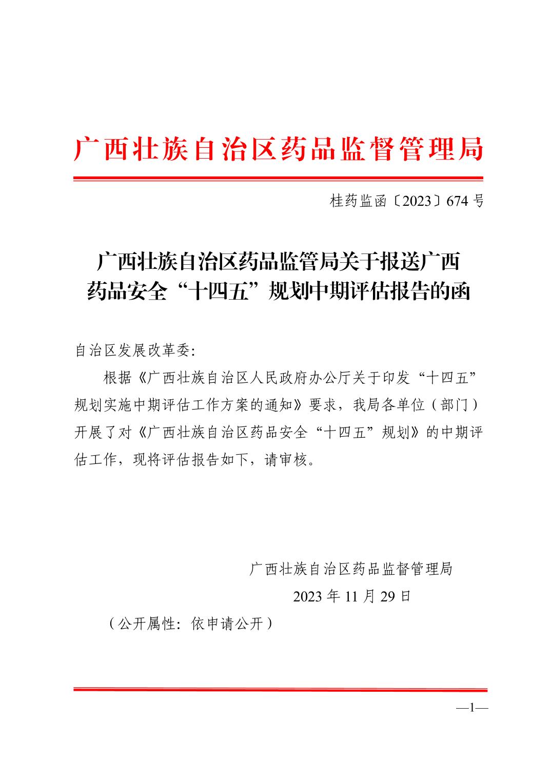 广西壮族自治区药品监管局关于报送广西药品安全“十四五”规划中期评估报告的函