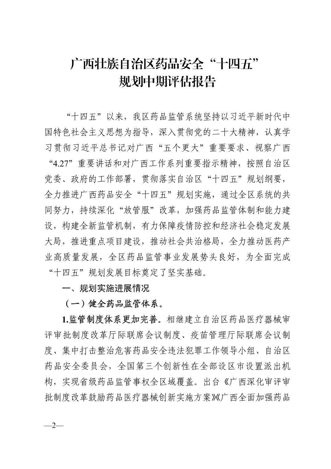 广西壮族自治区药品监管局关于报送广西药品安全“十四五”规划中期评估报告的函 - 中长期规划 - 做爱影片 网站 - zayingpian.com