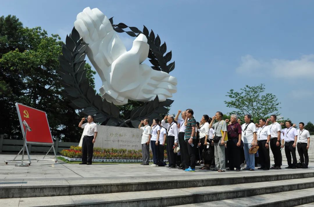 烈日下的和平鸽广场,神圣肃穆,全体党员面向党旗庄严宣誓。最后,全体人员前往昆仑关战役阵亡将士纪念塔举行纪念仪式,向抗战先烈敬献花圈。